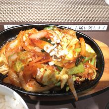 空港内のレストランはあまり期待しないことにしていますが、なかなか美味しかったです。厨房から聞こえる声も韓国語だったので本場の方が調理されてるんですね。辛さも調整出来たので辛めでお願いしました。サムギョプサルもたっぷりで食べ応えがありました。