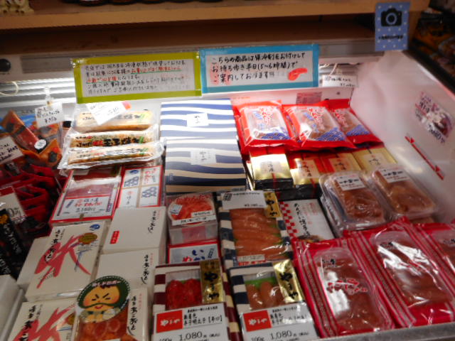 有楽町の交通会館の地下にある博多のアンテナショツプで、博多の有名食品の明太子やお菓子を販売していましたが、なにせ、狭い店舗で驚きました。博多のみの食品でもなく、九州のラーメンなどの物産も扱っていました。が、やはり、人気は明太子で冷蔵庫に保存してありました。