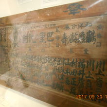ならまちの大きな町家の内部には、大きなガラスケースの中に並べられて 様々なものが展示されていたので、興味深く拝見しました。とくに大きな木の額に太い墨で人の名前が並べて書かれているものなどはとても印象的でした。