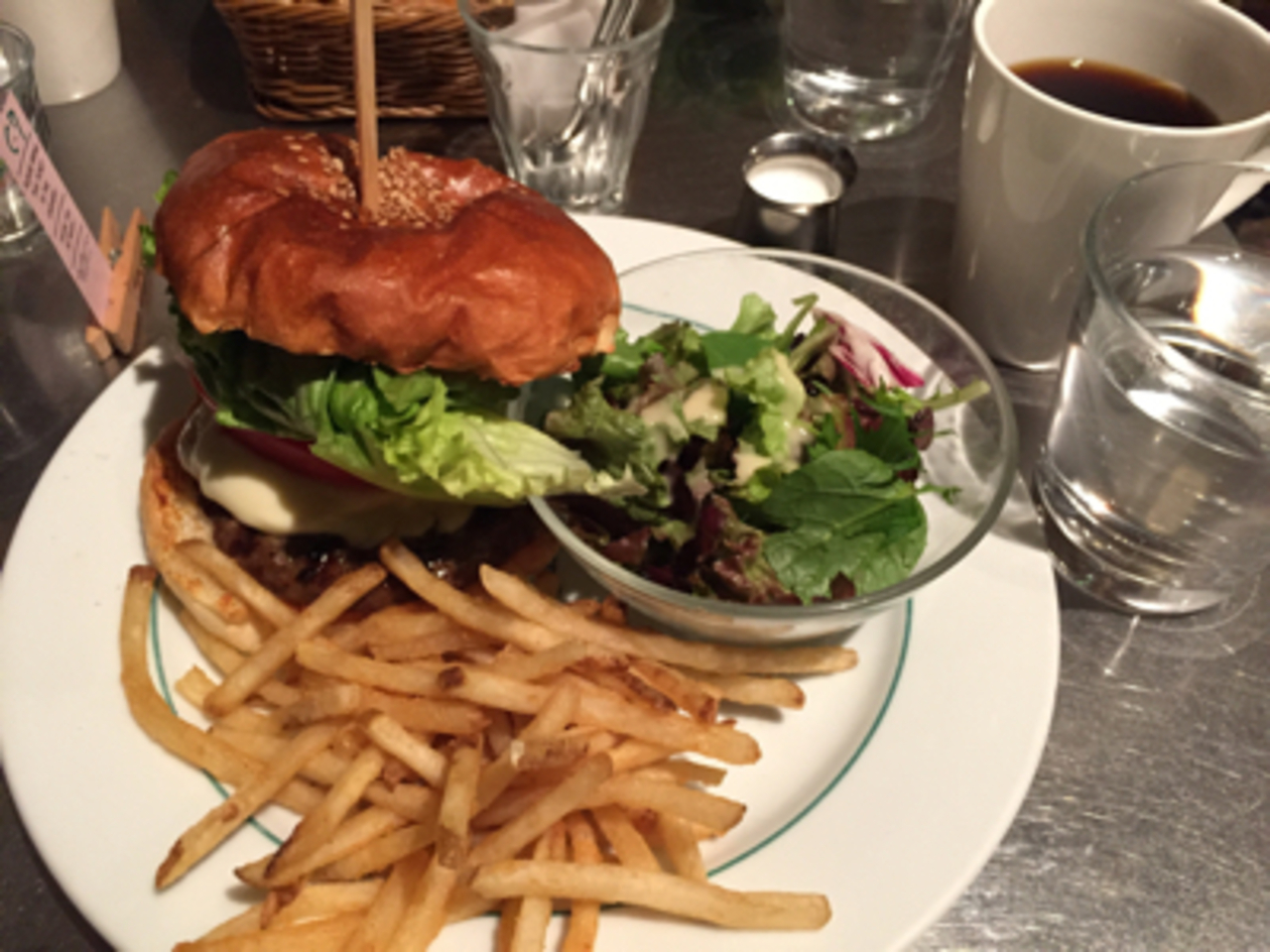 休日に11時半のオープンを目指して行ったところすでに行列。新宿マルイの地下にあり、人気のお店です。マッシュルームとモッツァレラチーズのハンバーガーを注文。スパイシーでジューシーで肉肉しい。かなりのボリュームで食べ応えありです。付け合わせのポテトがこれまた美味しい。