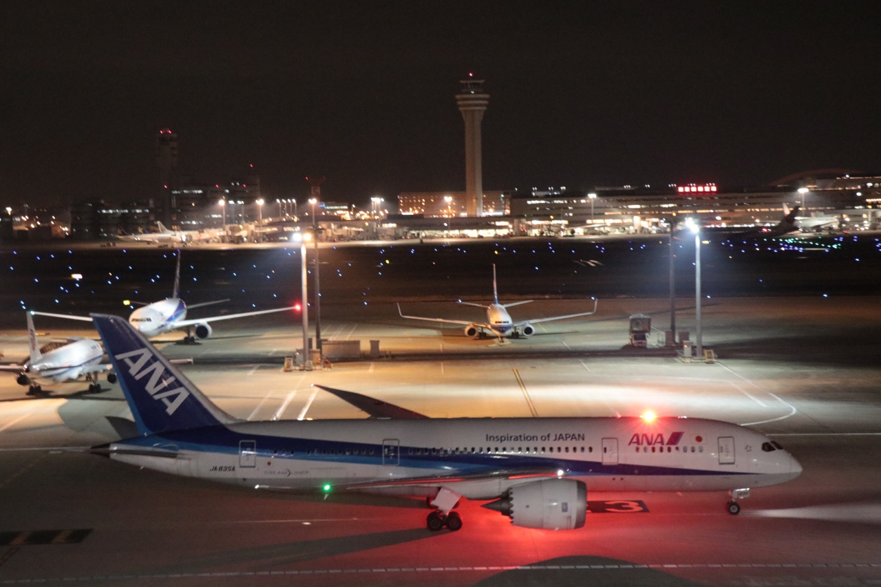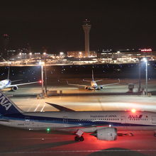 夜になると滑走路や誘導灯が点灯され、綺麗な景色を見ることができます。