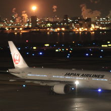 夜間は川崎・臨港エリアの工場夜景が美しく見えます。滑走路や誘導路にも光がともり、非日常的空間が生まれます。2フロアがあり、1フロアは左右に分かれておりそれぞれが狭いのですが、階段で1フロア上がると広いデッキがある。(こちらは飛行機は見えますが、建物の関係で駐機中の機体は見にくいです)