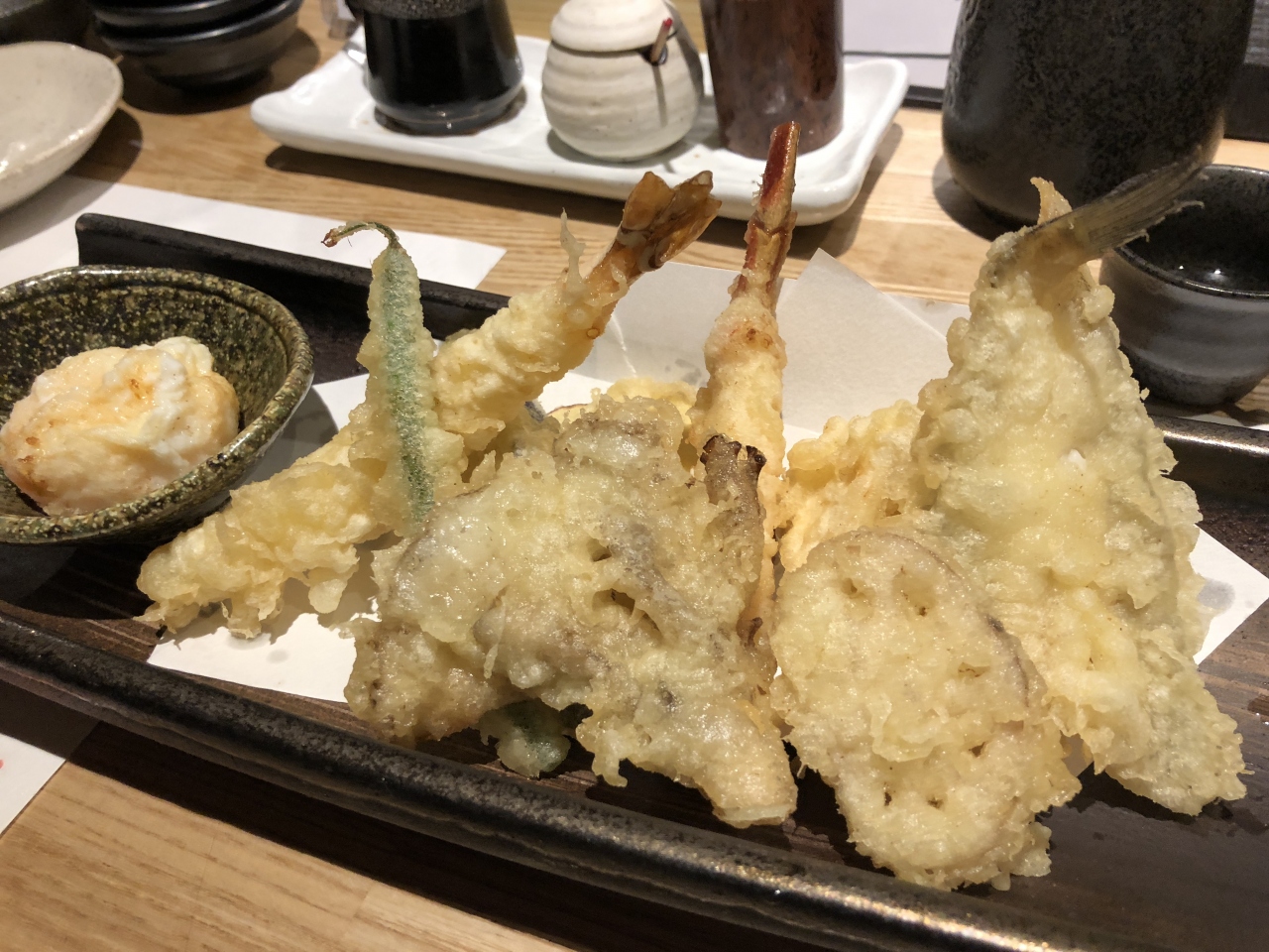 天神橋筋商店街にできた時から気になっていた天ぷら屋。メニューを見ると昼間はリーズナブルだが、夜は高そう。でも、軽く飲むなら大丈夫だろうと入店。コースもあるが、牡蠣が食べたかったので、単品で。まず来た刺身盛りのネタはかなりいい。天ぷらは気軽にポンポン食べられる感じじゃなく、どちらかといえば、ゆっくりお酒を飲みたい向きにはいい感じ。牡蠣の揚げだしもいい塩梅でした。