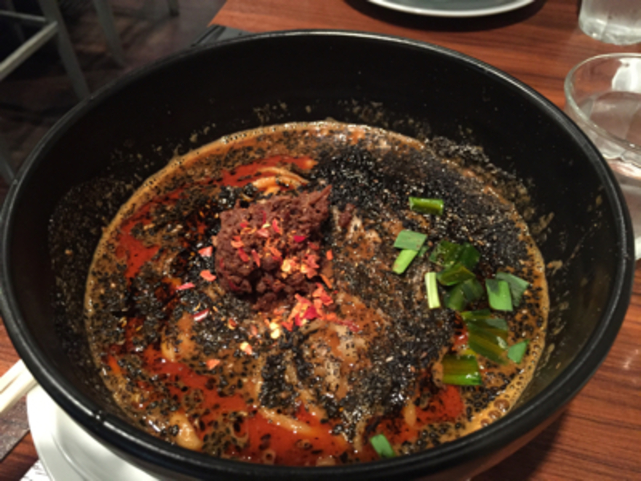 首都高の高架下にあります。担々麺は白、黒、紅の3種類。黒は中間の辛さです。見た目もインパクトがありますが、麺はもちもち、ラー油たっぷりな濃厚スープ。肉味噌も美味しかったですが、とにかく濃い~味でごはんを注文したくなりました。