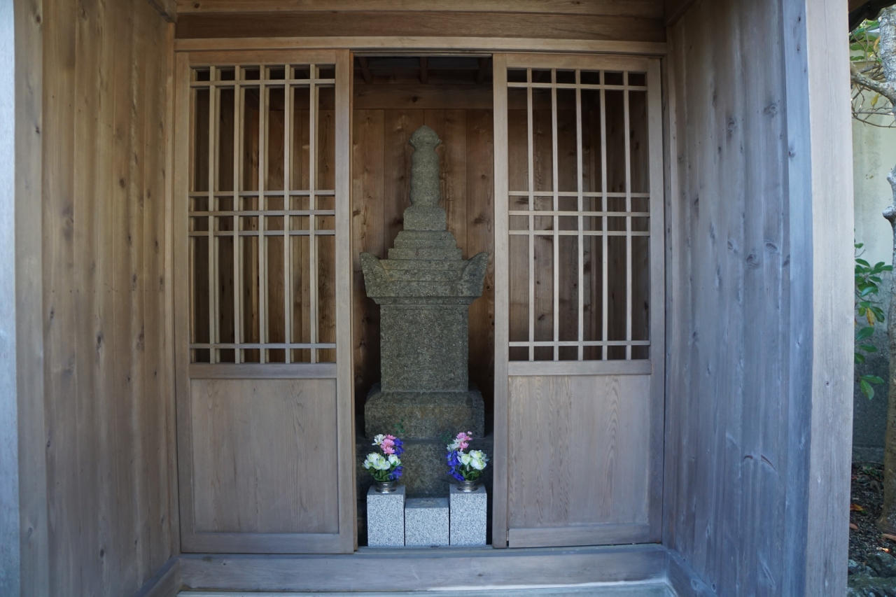 いもじいさんの碑は、御前崎の小学校から少し坂道を下ったところ。海福禅寺という寺の境内にこの碑はあります。屋根付の小屋に安置されていて、傍らに説明板。薩摩の難破している御用船のお礼の20両を断り、その代わりにサツマイモの栽培方法を教えてもらったという人物。その遺徳を記念するものだそうです。