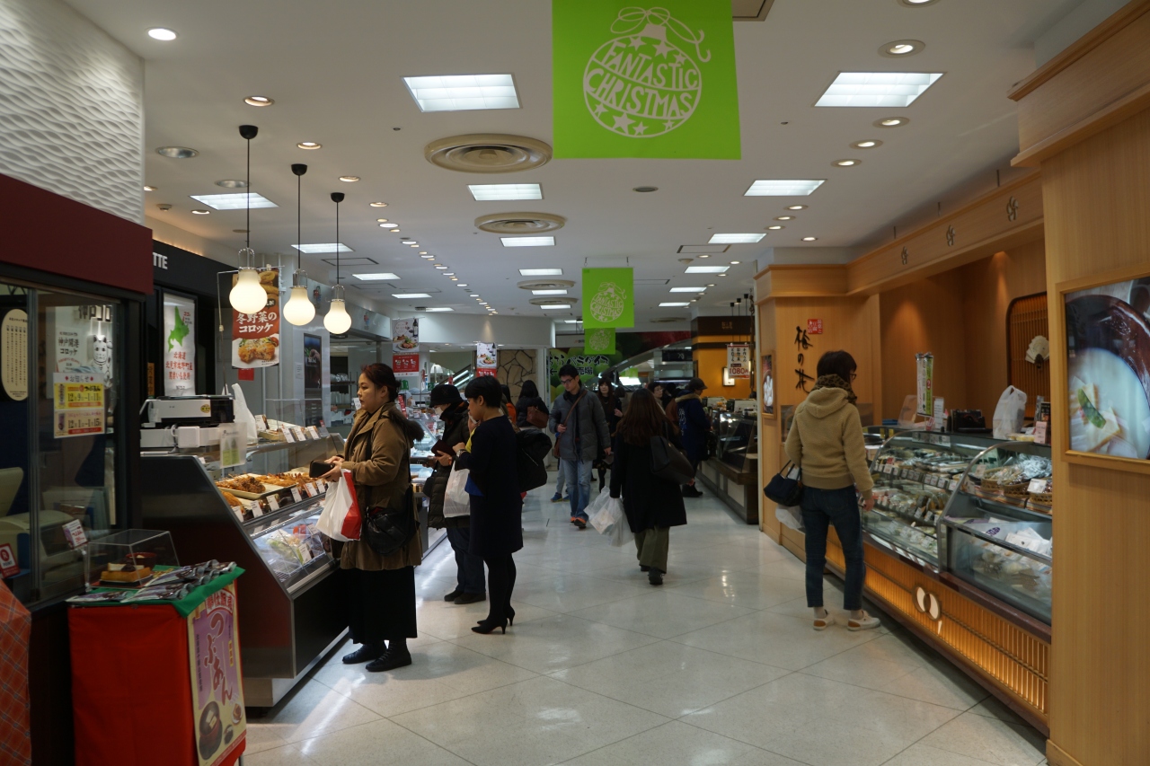 松坂屋は、静岡駅前にどーんと構える百貨店。静岡駅から少し離れたように見えますが、新静岡駅の方に向かう地下道は松坂屋を貫くように設置されていて、そこを通ると松坂屋がいかにアクセスがいいかを実感。駅ビルかと思えるほどのアクセスです。