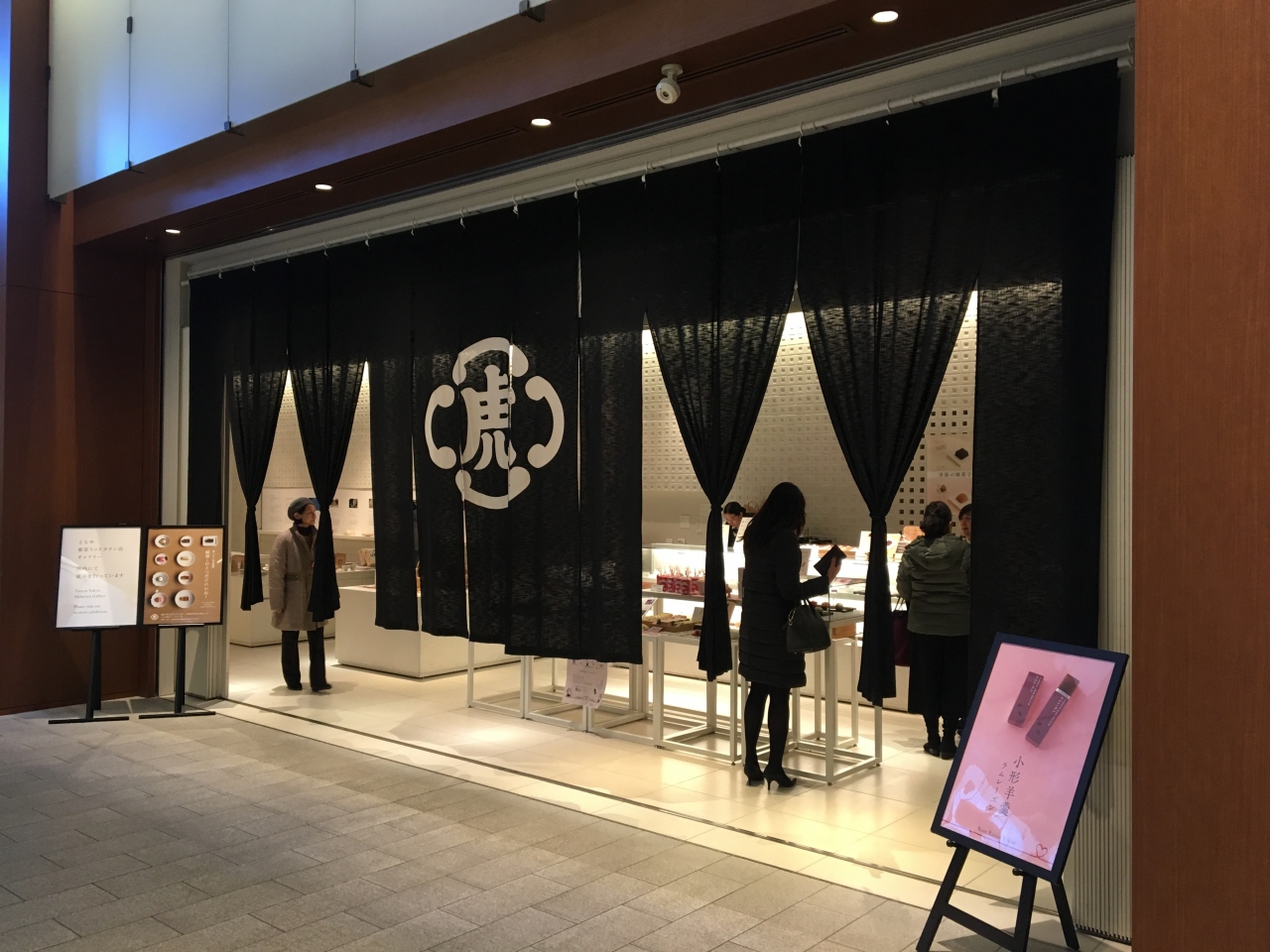 こちらの虎屋さんは独立した店構えになっており、立派な「虎」の暖簾がかかってます。