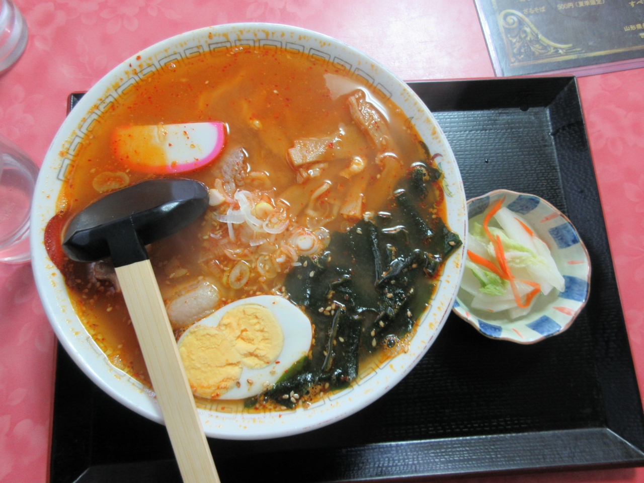 戸沢駅前にあります.ラーメンにしては塩辛くはありませんが,代わりにかなり甘口に作ってありました.麺の量は比較的多いです.中国ラーメンが人気ということで注文してみました.唐辛子の効いたラーメンですが,余りインパクトはありませんでした.叉焼の代わりに焼肉が載っていたのが珍しかったです.