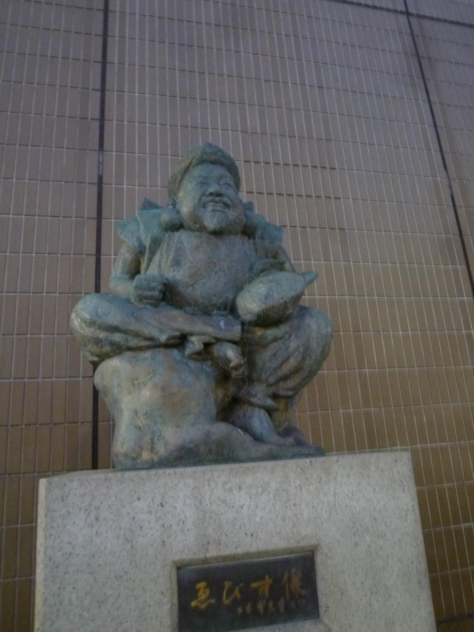恵比寿の待ち合わせ場所の一つに必ず上がるこのえびす像ですが、日比谷線から来た人ならまだしも、JRでやってきて初めて恵比寿駅に降りた人に場所を伝えるのはなかなか難しい。せめてもう少し周囲に解放感があれば良いのだけれど、像の後ろはすぐ壁でやや圧迫感があり像も目立たない。