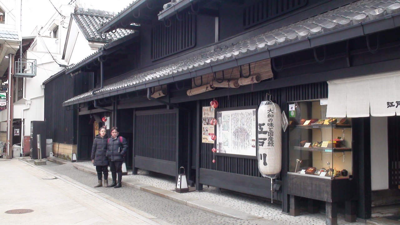 近鉄奈良駅を降りて、商店街アーケードを通って歩いていくと、もうそこは古(いにしえ)の都の裏町。昔ながらの古い家並みが続きます。いくつかは見学できるようになっていますが、いまでも普通の住宅や商店として利用されている家屋も少なくなく、いい雰囲気を醸し出しています。
