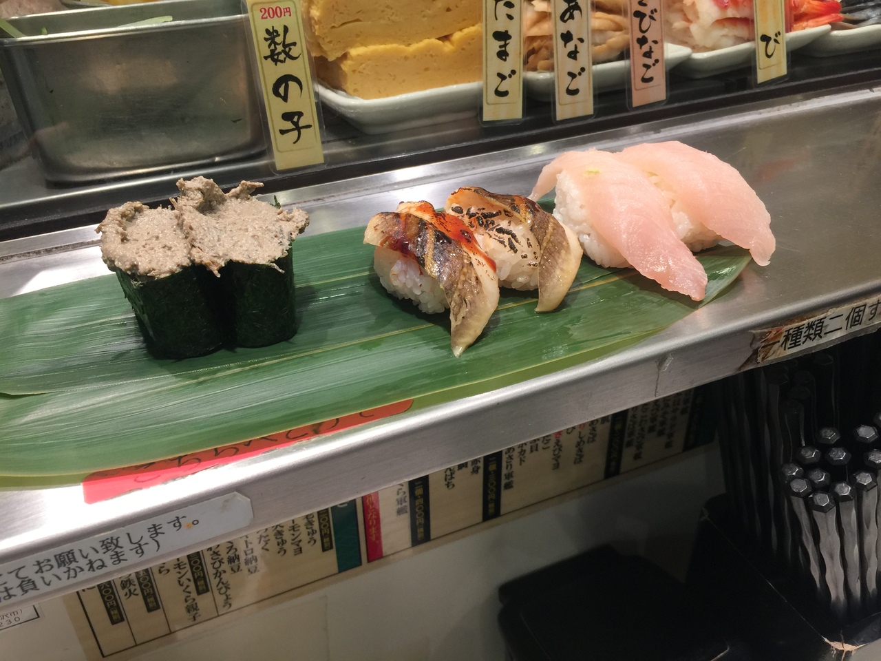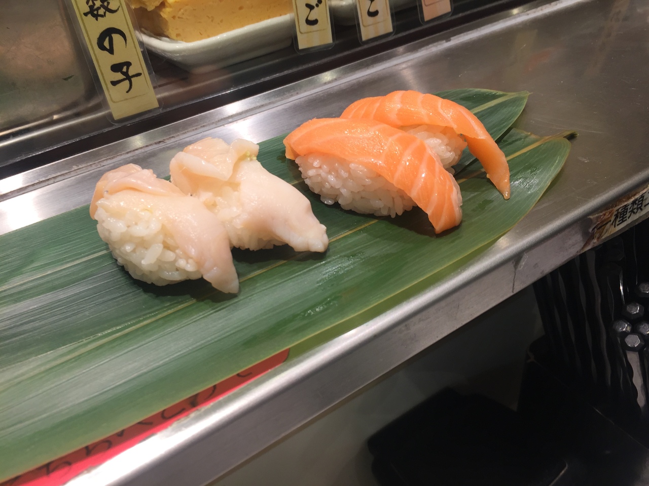 食べたのはかにみそ、穴子、ビンチョウマグロ、ツブ貝、サーモンを2貫ずつ合計10貫!
