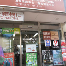 箱根町総合観光案内所は、箱根湯本駅の改札口を出て、陸橋で国道1号線を越えたところにあります。タクシー乗り場の前です。宿泊客用有料送迎マイクロバスの乗車場所でもあります。自分のために案内所を利用することは少ないですが、お客さんを同道した時には観光説明用にパンフレットを貰っています。