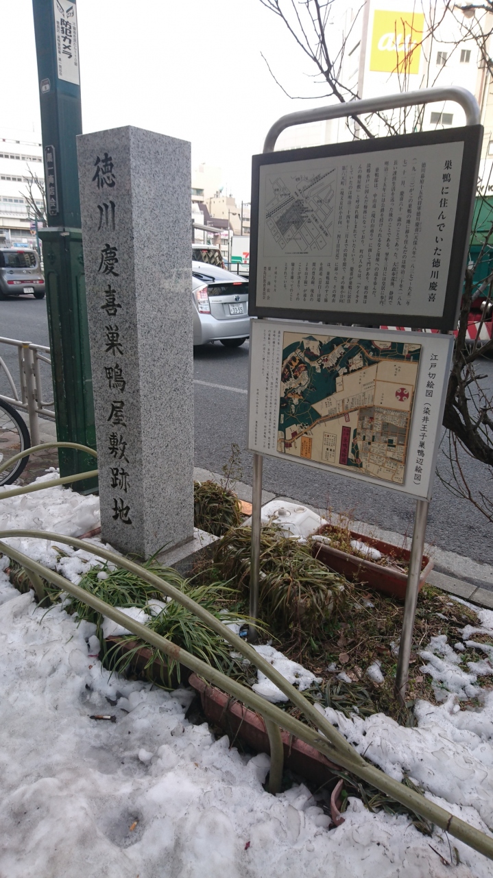 巣鴨駅から徒歩5分ほどの白山通り沿いの歩道に石碑が建っています。ローソンの目の前なので分かりやすかったです。徳川慶喜がこの地で暮らしたのは明治30年からの4年間ですが、時代に翻弄された徳川慶喜の生涯が目に浮かぶようでした。