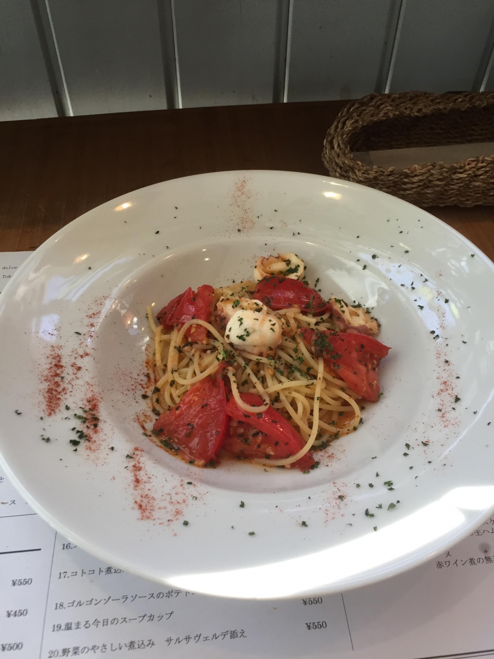 休日のランチに行きました。予約しないで行ってしまい、最初に入ったお客さんが食事を終わるまで待つことになりました。スタッフの方々が気にかけてくださり、飲み物を出してくださいました。前菜二皿に、バケット、メインはパスタとサンドイッチにして、2人でシェアして頂きました。どの料理も美味しくて満足しました。何より、会計の時にまで、「待って頂いてありがとうございます 」 などと言って頂き、恐縮しました。スタッフの皆さんの接客が、とても感じが良かったです。今度は、予約して伺いたいです!