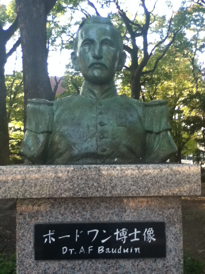 上野公園の東京都美術館の東側にこちらの像がある。前の路は多くの人が行き来していたが、こちらの像を見ている人はいなかった。お勧めの点は、ボードワン博士はオランダの軍医で明治初期に戦で荒廃したこの地域に病院建設が計画されていたが公園を築くことを提唱したこと、ボードワン博士の胸像はしばらく弟のもので2006年に本当の博士のものに替えられたとの逸話も残っていること、銅像を見ながら当時の荒廃された土地やその後の公園建設の様子を楽しく想像できること、今の上野公園の発展を見るとボードワン博士の先見の明に感心すること、当時の関係者が博士の提唱を受け入れたことに感心すること、銅像を長年維持管理している関係者の努力に感心することである。