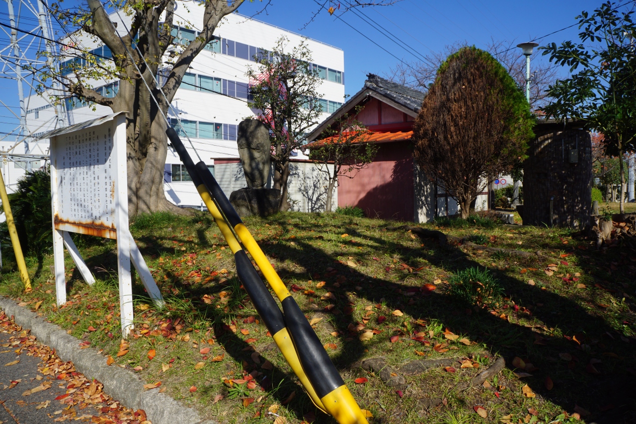 天王山遺跡は、バス通り沿いのちょっとした公園のような場所。入口にさびた説明板があって、これは縄文時代晩期の遺跡なんだとか。限られた一角ですが、発掘調査で住居跡のほか土器なども発見されたそうです。登呂遺跡は弥生時代ですから、その少し前の時代ということになります。