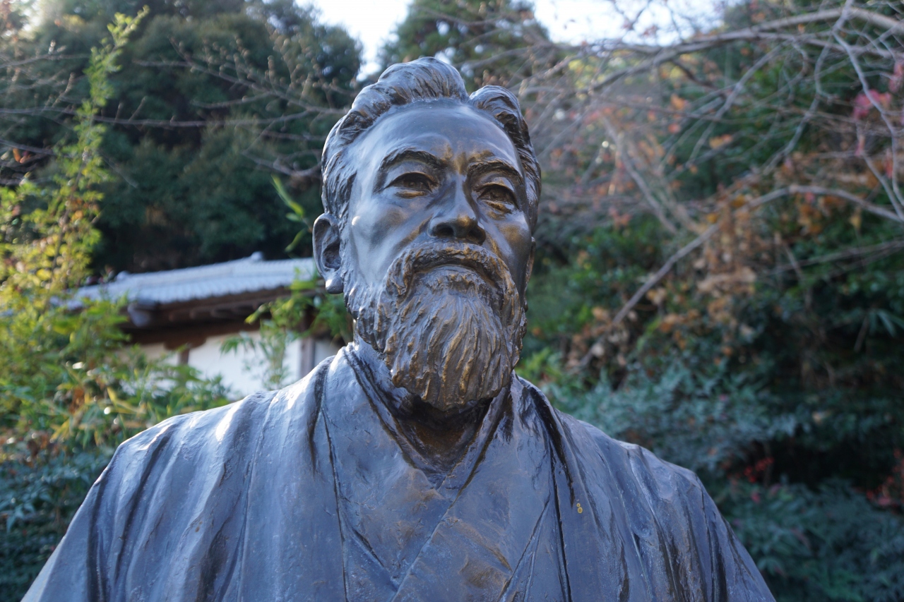境内には鉄舟の像と墓。それを見て終わりにしようとも思ったのですが、せっかくなので拝観を申し込むと快く受け入れてもらいまして、本堂の鉄舟の書の屏風や仏像もいくつか拝見できました。いわれが分からなくなっている仏像もあったりして、説明を聞いてもちょっと頼りないところもなくはないのですが、それも歴史がとても長いためかと思います。