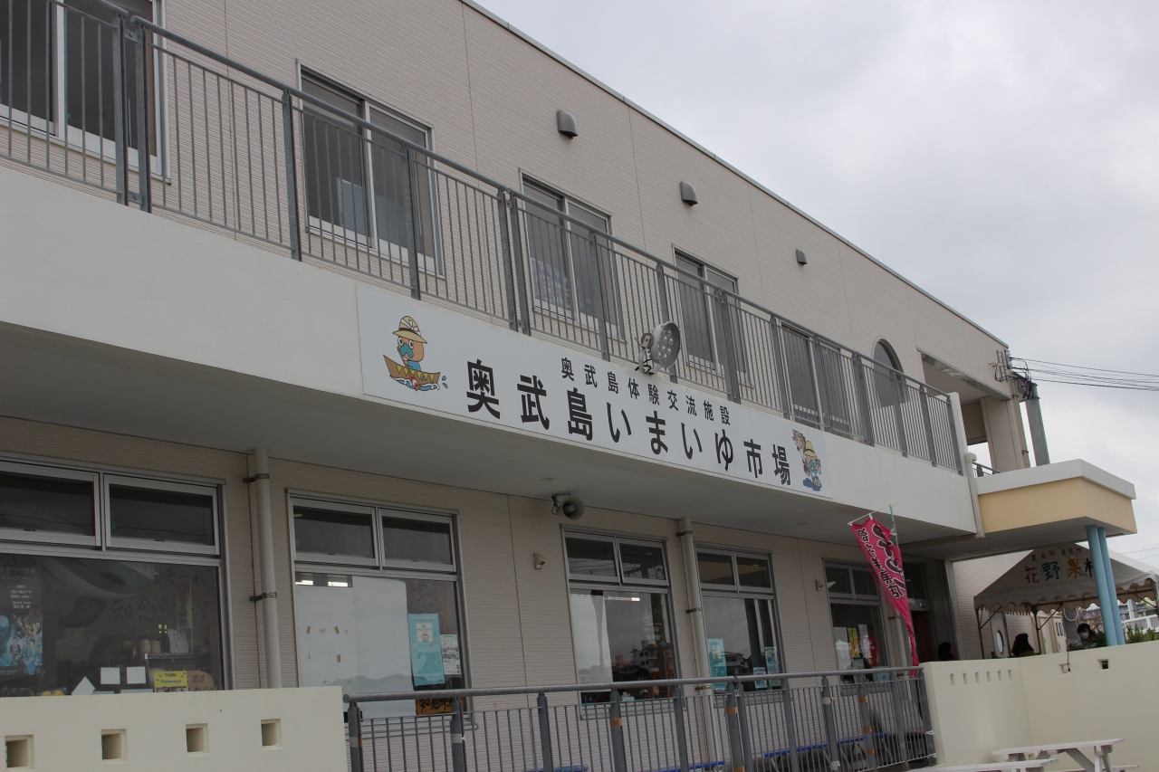 奥の方に進むと、いまいゆ市場があり無料駐車場にレンタカーを停めました。