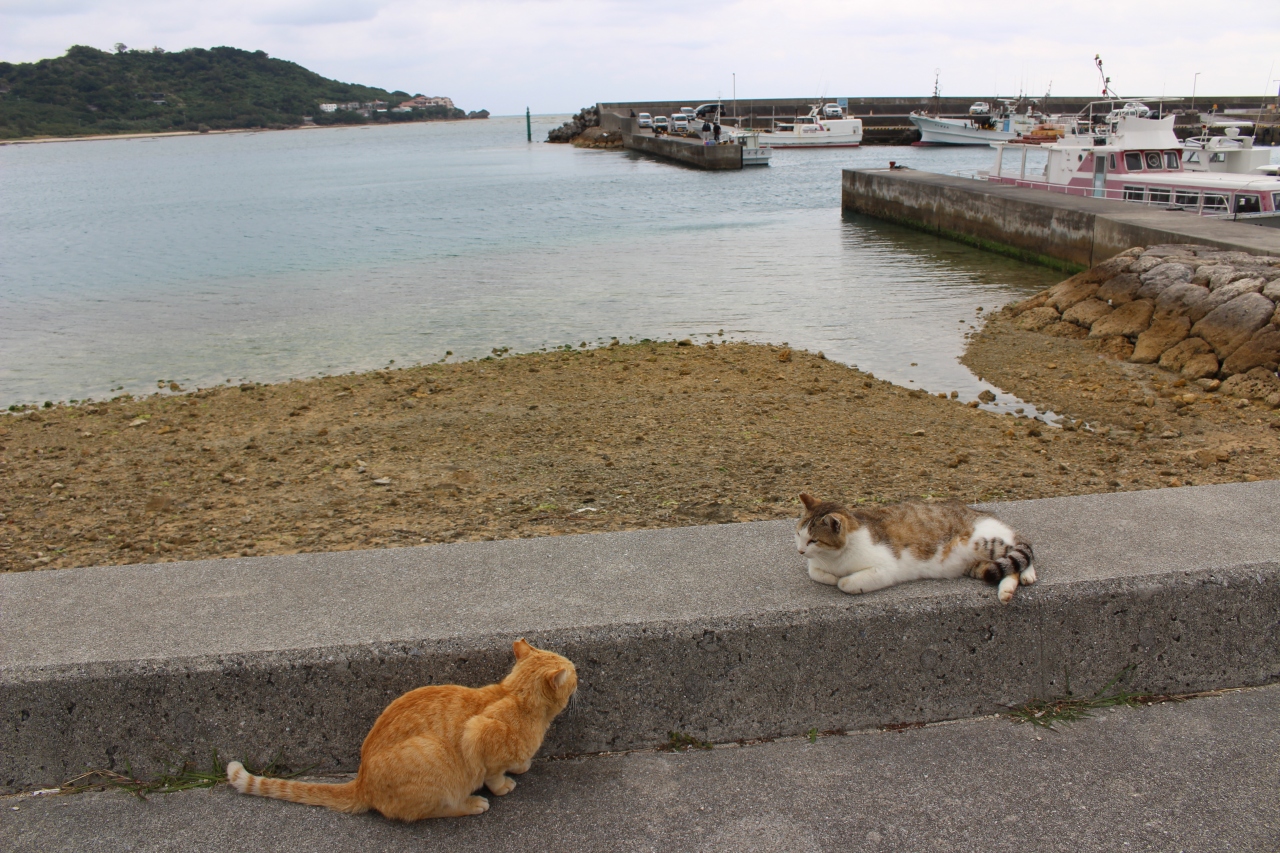 島にネコが数匹いて~人慣れしていたので、青い海とともに癒されました。