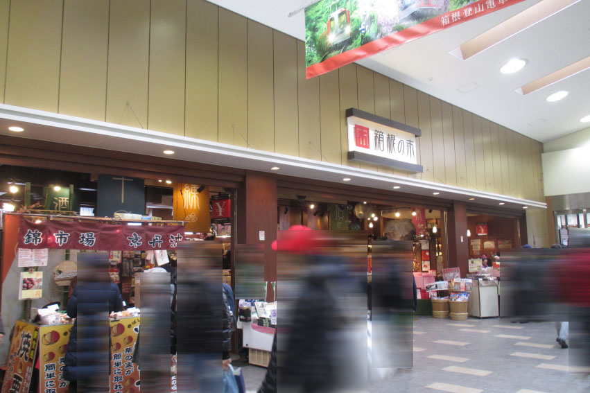 箱根の市は箱根湯本駅の改札前にあり、いつも箱根からの帰りに寄るお土産屋さんです。「市」と名前が付いている通り、いろいろなお店(ホテルも含めて)のものが揃っているのが最高に便利です。また、後は電車に乗るだけですので重たいものを買うのにも便利です。