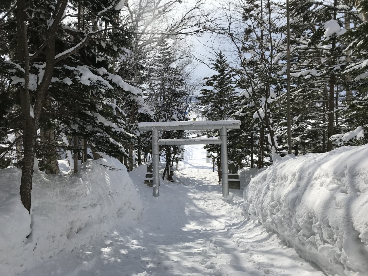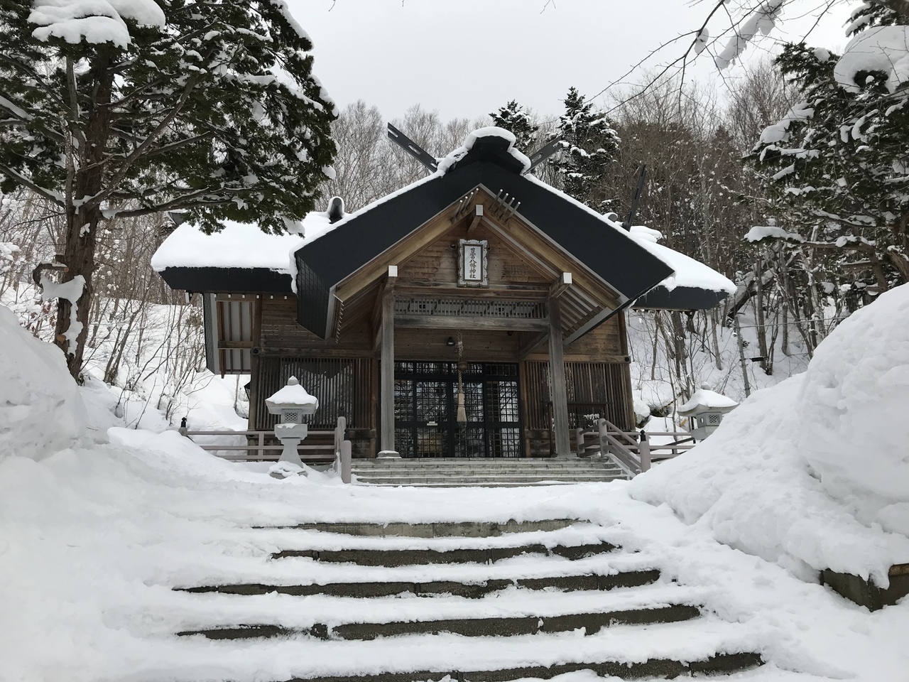 参道および拝殿前は雪かきがされており、膝まで雪に埋もれながら参拝…ということはなく一安心。