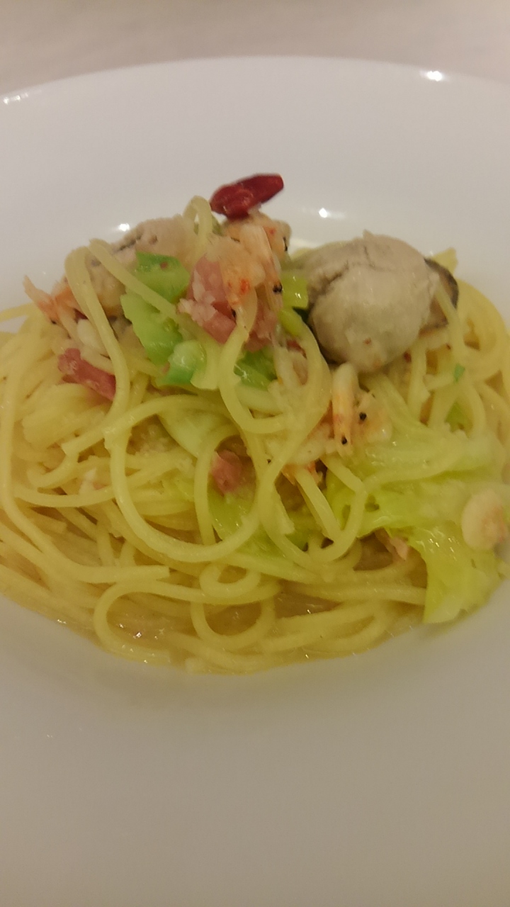 ランチの方は何種類かあるのですが、本日のパスタが、牡蠣と桜エビだったのでそれにしました。