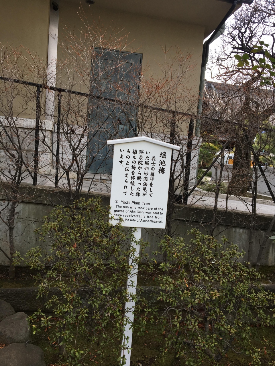 忠臣蔵で有名なお寺で、この梅の木も見どころの一つとなっています。時期的に梅の花が咲いているかと思いましたが、ちょっと早くて残念でした。