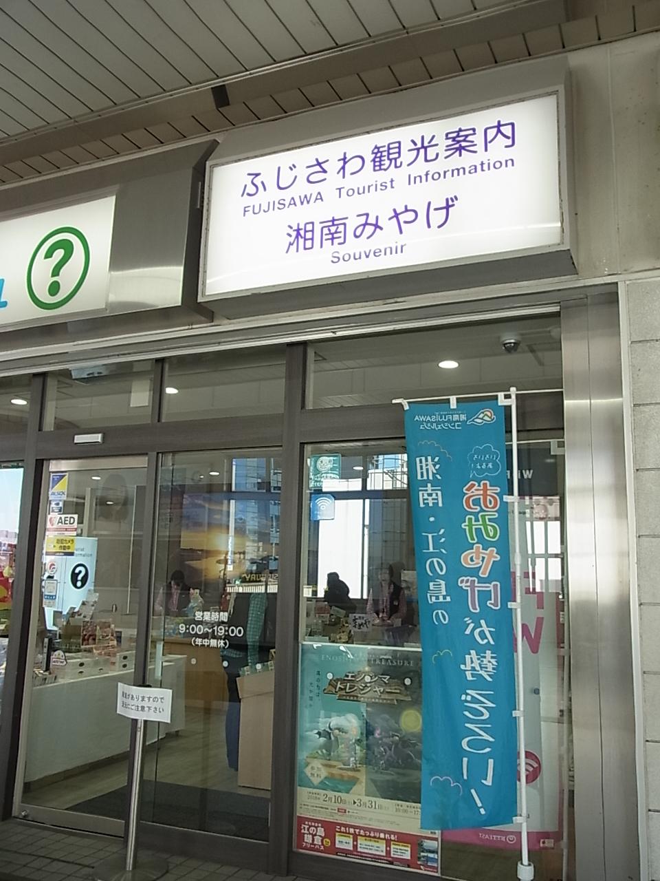 JR藤沢駅改札を出て右手南口方向へいくと直ぐにあります。看板には観光案内所と湘南おみやげの2行の文字、そして隣には湘南FUJISAWAコンシェルジュと2つの看板が。中に入ると案内所看板側には土産、コンシェルジュ側はパンフレット類と仕切りは無いが何となく分かれています。分ける必要があるのか?とも思いますが。情報収集には欠かせない施設ですので忘れずに。