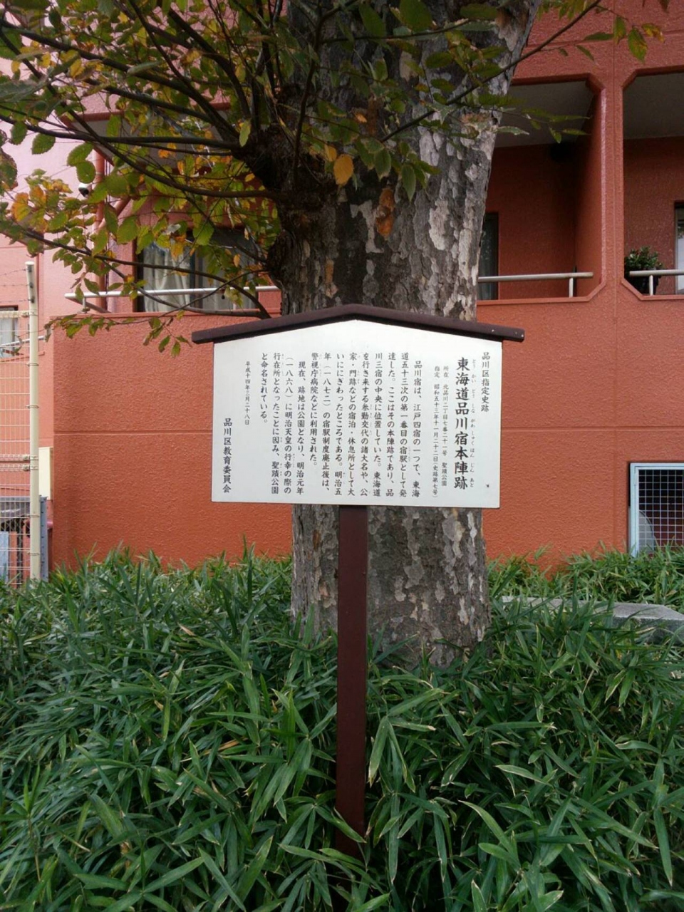 「東海道五十三次」と言われる江戸から京都間の五十三の宿のうちの最初の宿である品川宿の本陣があった場所です。現在は、聖蹟公園という公園になっており、公園内には、聖蹟公園由来の碑、聖蹟の碑、夜明けの像など5つの石碑がありました。かつて、江戸時代には参勤交代で上京した大名などの宿泊施設や休憩場所として栄えていたようですが、現在は人影も疎らな公園でした。