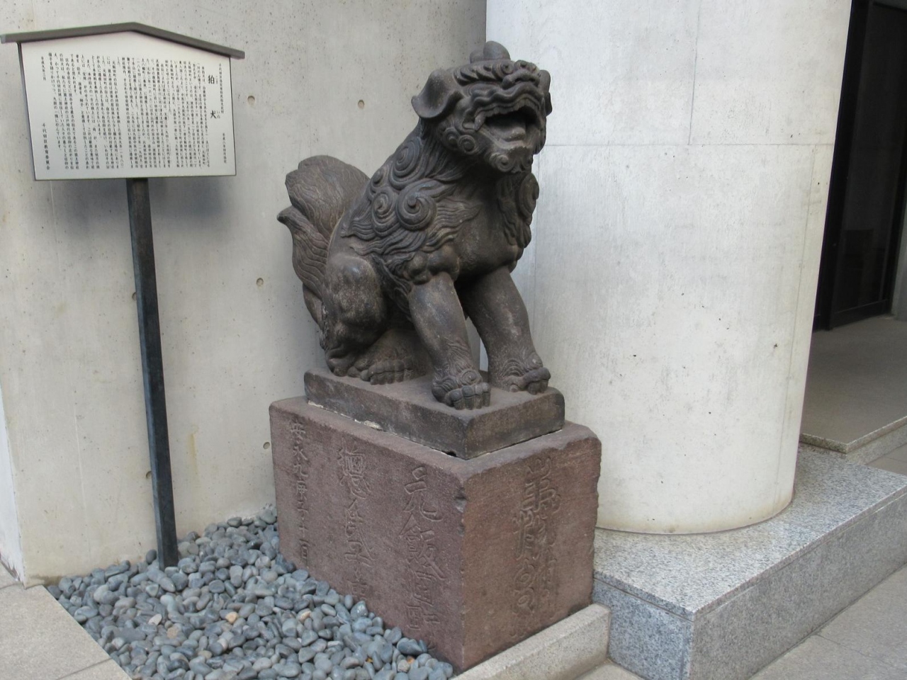社殿前の狛犬には立札があり、それによると概略だが