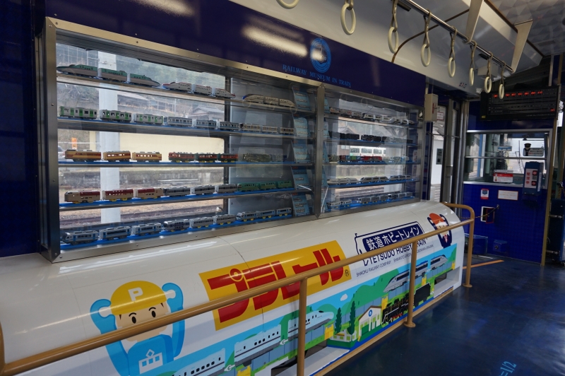 さらに江川崎駅では、兄弟分の観光列車「海洋堂ホビートレイン」とすれ違い、海洋堂も10分停車するので、車内見学までできちゃいます。