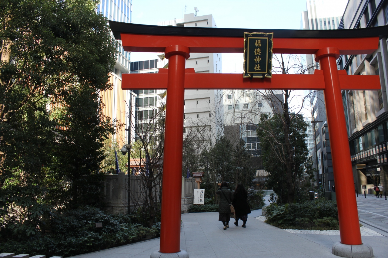 二月の休日、中央通りを歩いて神田駅から東京駅まで行きました。日本橋界隈を散策するのが目的です。日本橋室町に入ると左側に嫌でも目に入るのがコレド室町。その脇を入ると小さいが整備された綺麗な神社があります。福徳神社です。徳川家康も参拝した由緒ある神社です。参拝客が多く、参拝するのに時間がかかりました。