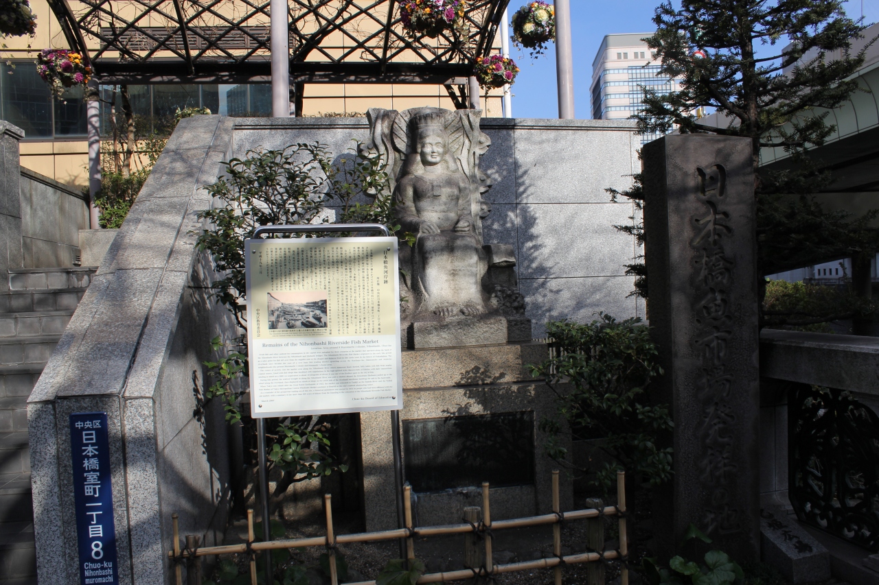 二月の休日、日本橋界隈を散策しました。お目当ての日本橋。上を高速道路が走りせっかくの橋が日を浴びることができません。しかし歴史ある場所で橋の周りには沢山の観光名所があります。日本橋魚河岸記念碑もその一つです。関東大震災で市場が消失して築地に引っ越したそうです。