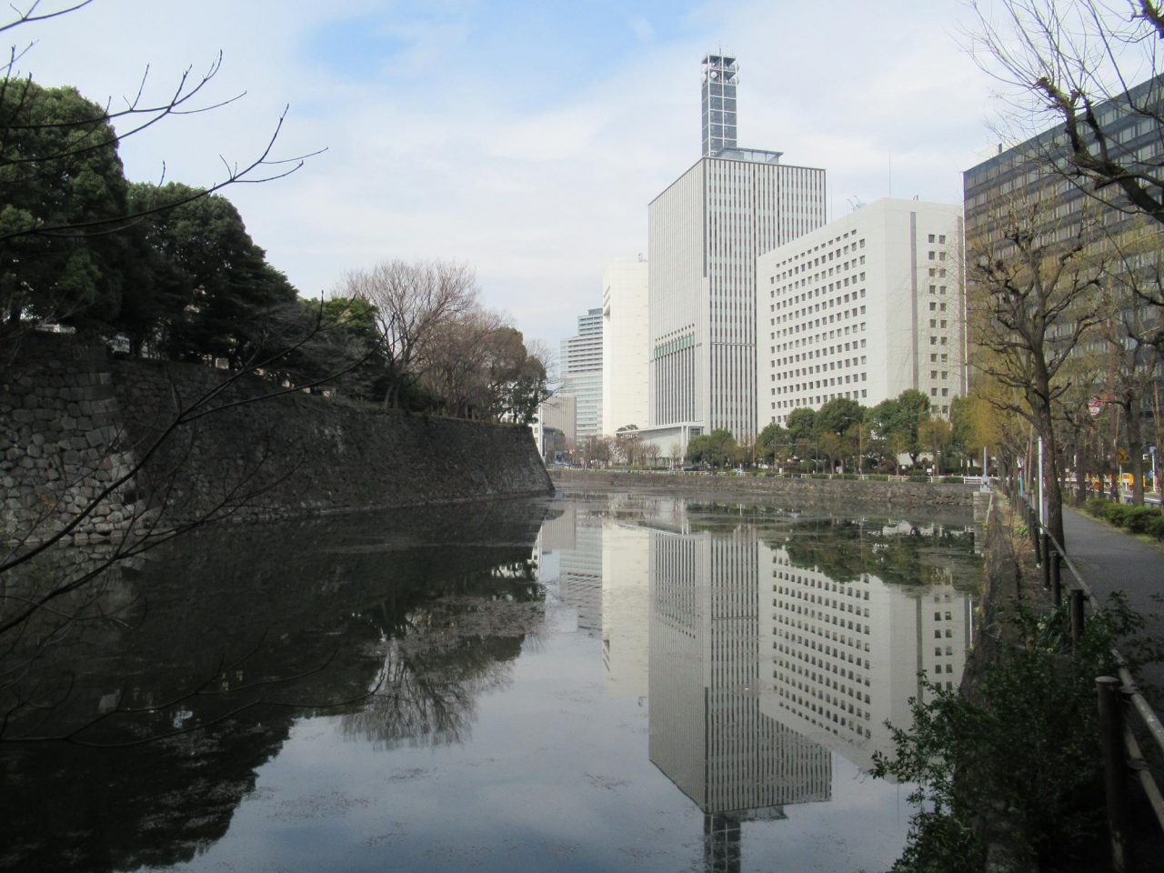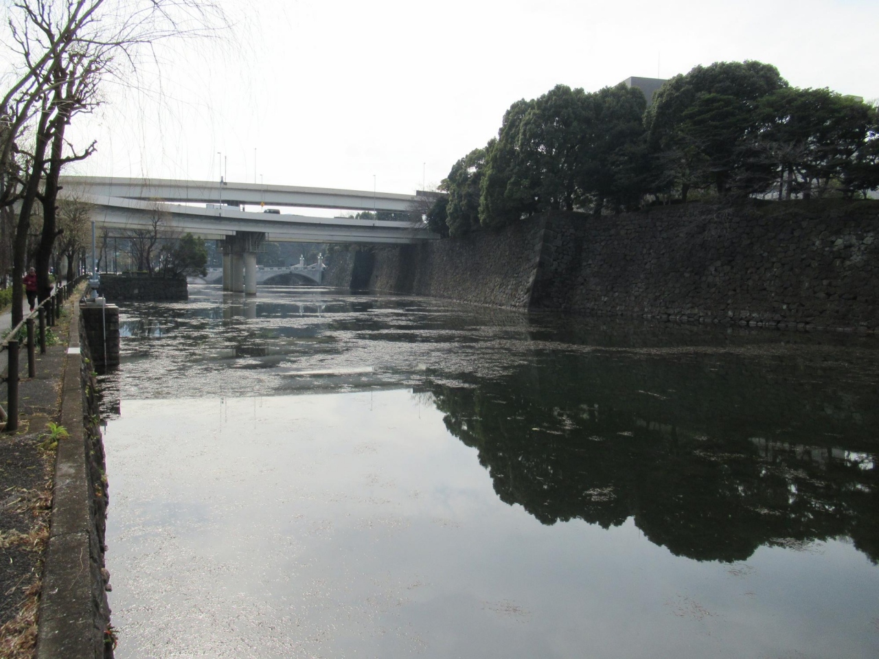 先日 (12月中旬) 清水門橋から見たので、今回 (2月上旬) は、南側の竹橋から北方向への内堀通りに沿って眺めてみた。