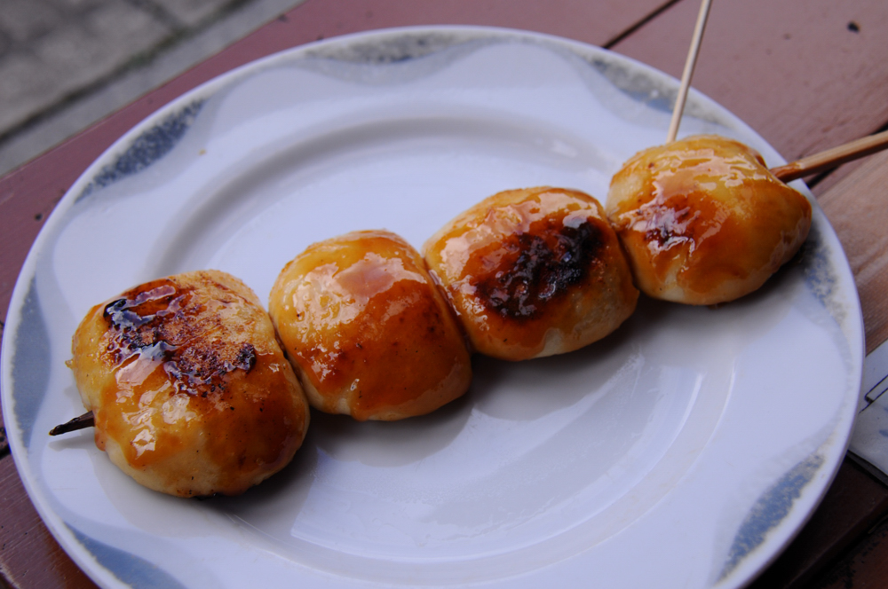 一串に四つのまんじゅうが刺さっていて、これが結構な大きさ。