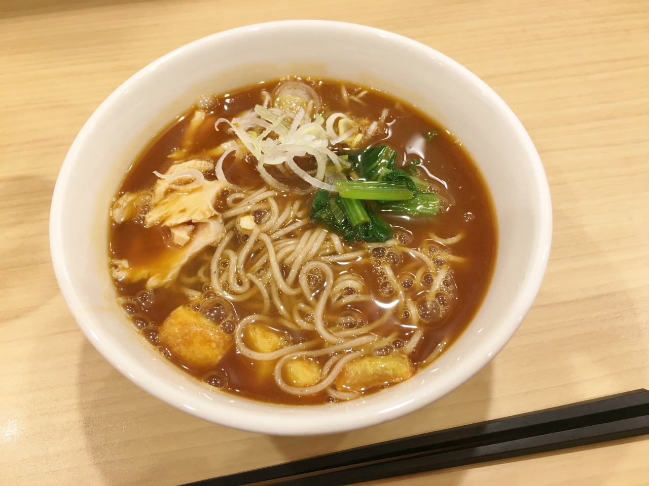 注文したのは「鶏カレーそば」490円、結構濃厚なカレー味で美味しかったですが、ご飯とのセットを注文しなかったことが悔やまれます。