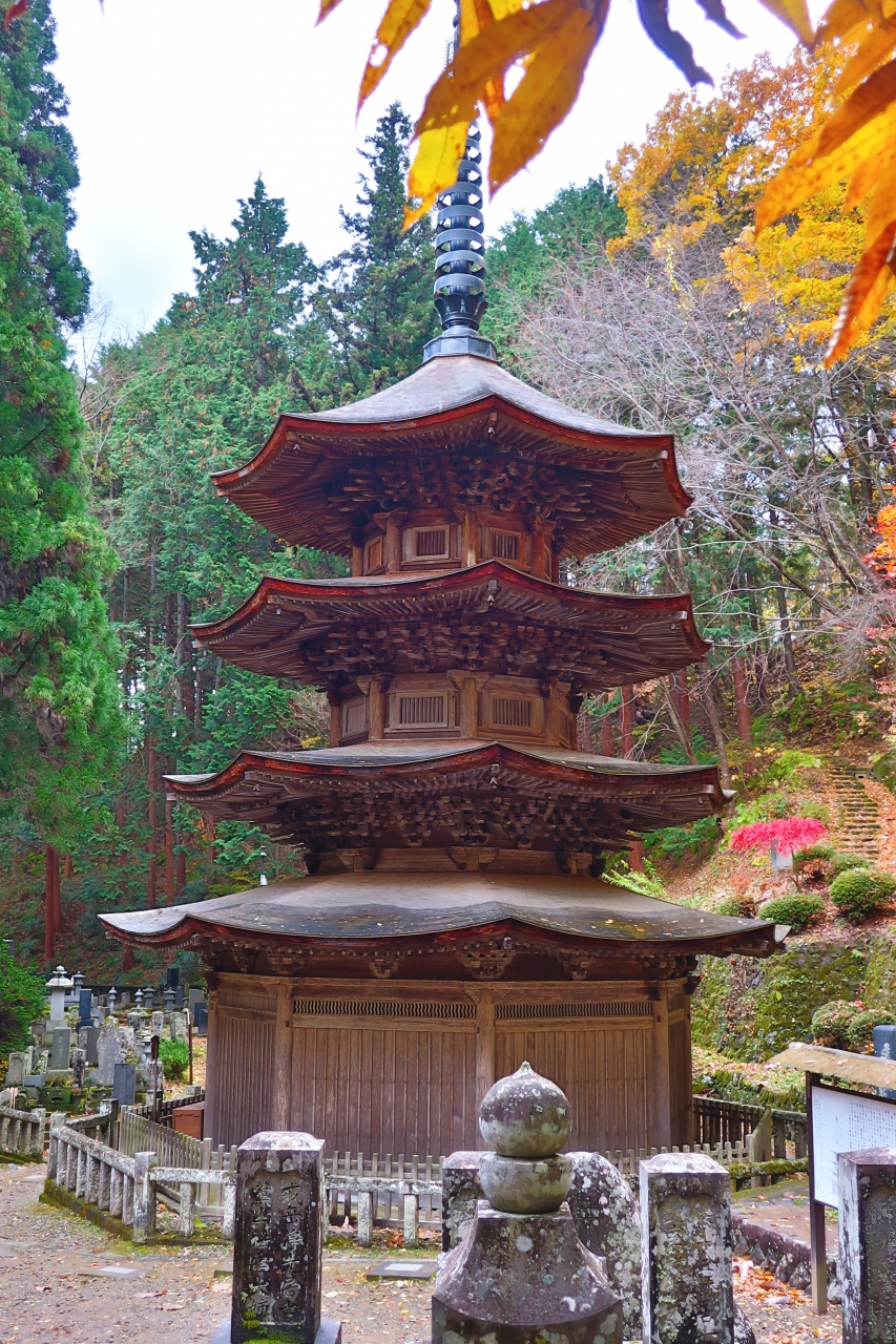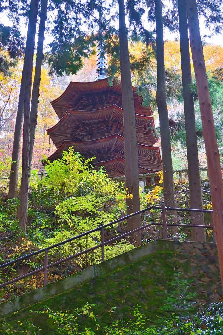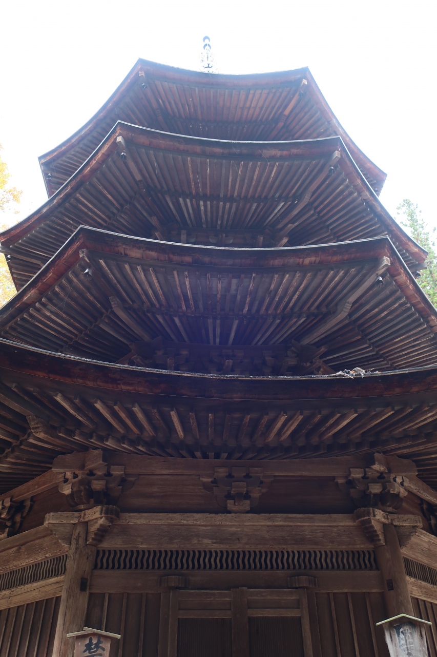 別所温泉にある禅宗のお寺です。石段を登って山門を潜った先に境内が広がり奥に大きな本堂があります。ここまでは無料で見学。安楽寺の一番の見所は長野県で一番早く国宝に指定された八角三重塔。本堂の左手から更に奥の山中に上って行くと、見上げる先に八角塔の見事な姿が見えてきます。この様な形をした木造の塔は他に見たことがありません(それが一番早く国宝に指定された理由ですが)。別所温泉では必見の建物です。