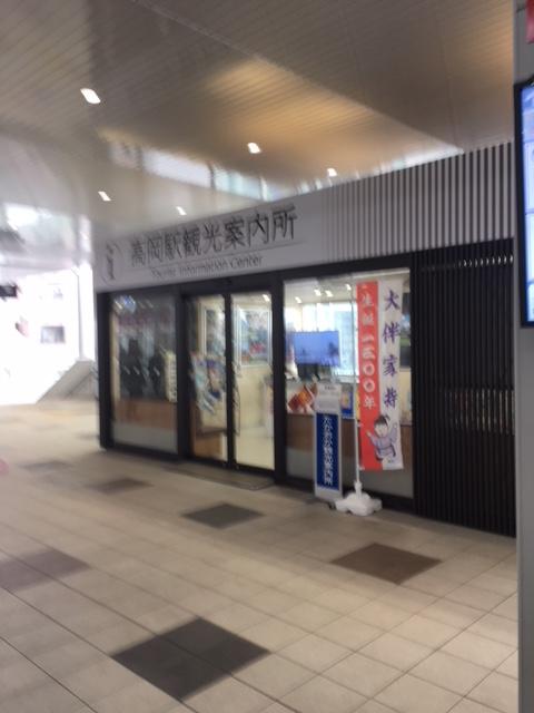 高岡駅の改札を出て、目の前にある観光案内所です。高岡古城公園まで行き方を尋ねると、丁寧に教えてくれました。雪が少し降っていたので、傘を購入する場所を尋ねると、傘を貸してくれました。途中、雪が大降りになったの助かりました。