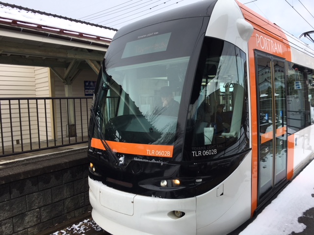 環水公園から船に乗って岩瀬カナルへ行きたかったのですが、冬なので運休していて、仕方なくこのライトレールで行くことにしました。約30分の乗車です。路面電車の新しい車両と同じです。路面電車と簡単に乗り換えがでいないのが面倒です。
