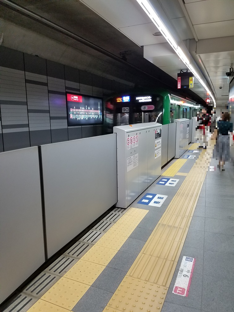 渋谷駅のホームで電車を待っていたら見慣れない緑色の電車が入ってきました。