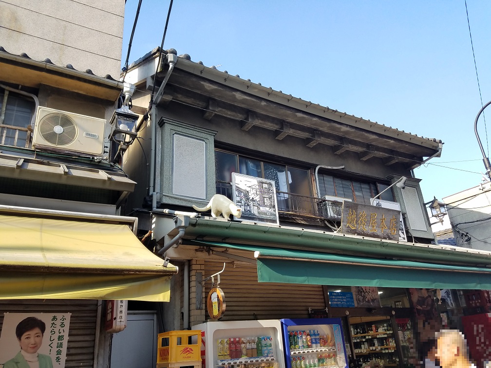 割りとリアルな猫のオブジェがお店の屋根に居るので写真を撮る人が多いです。