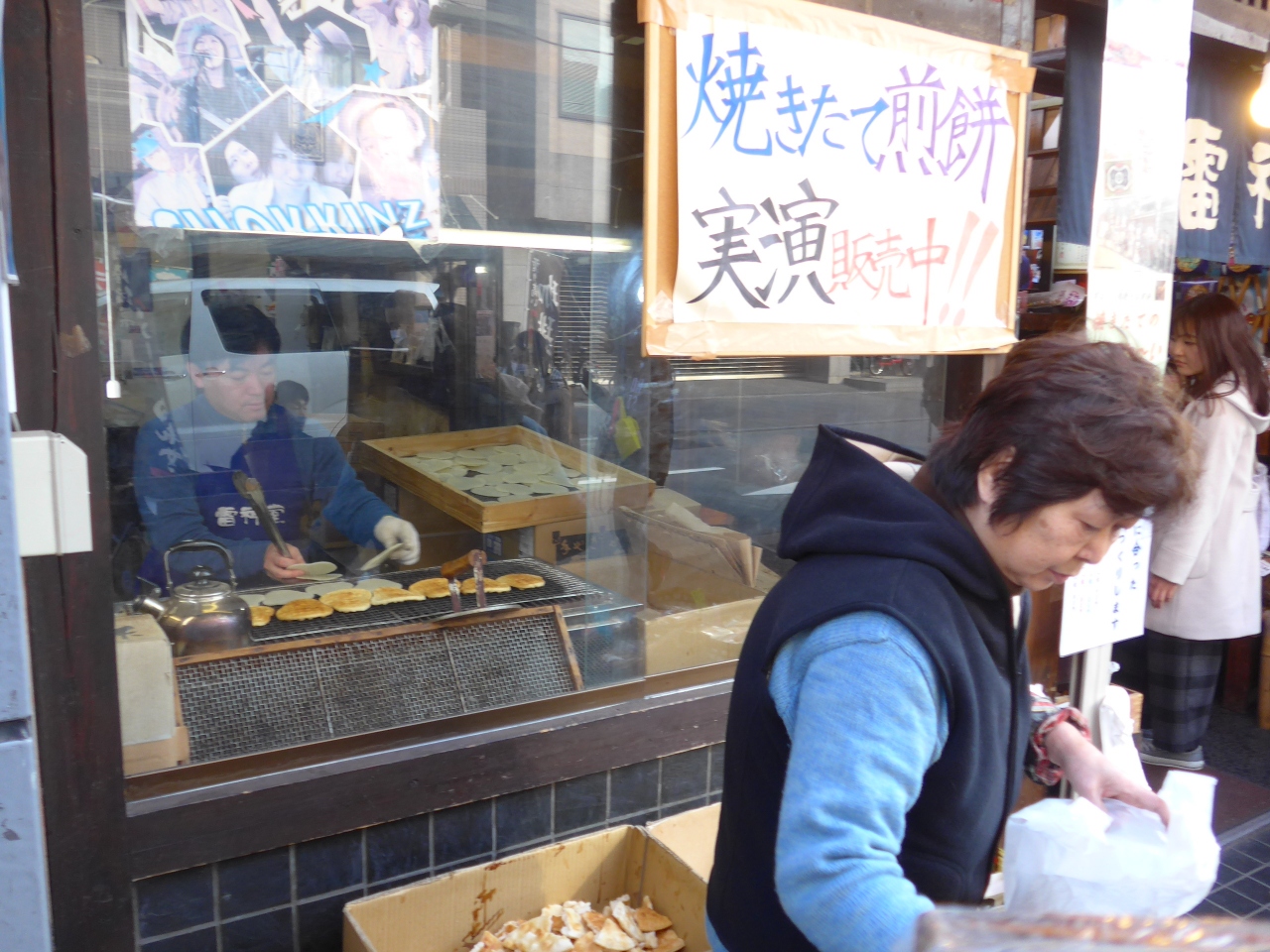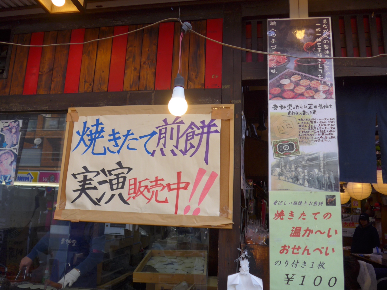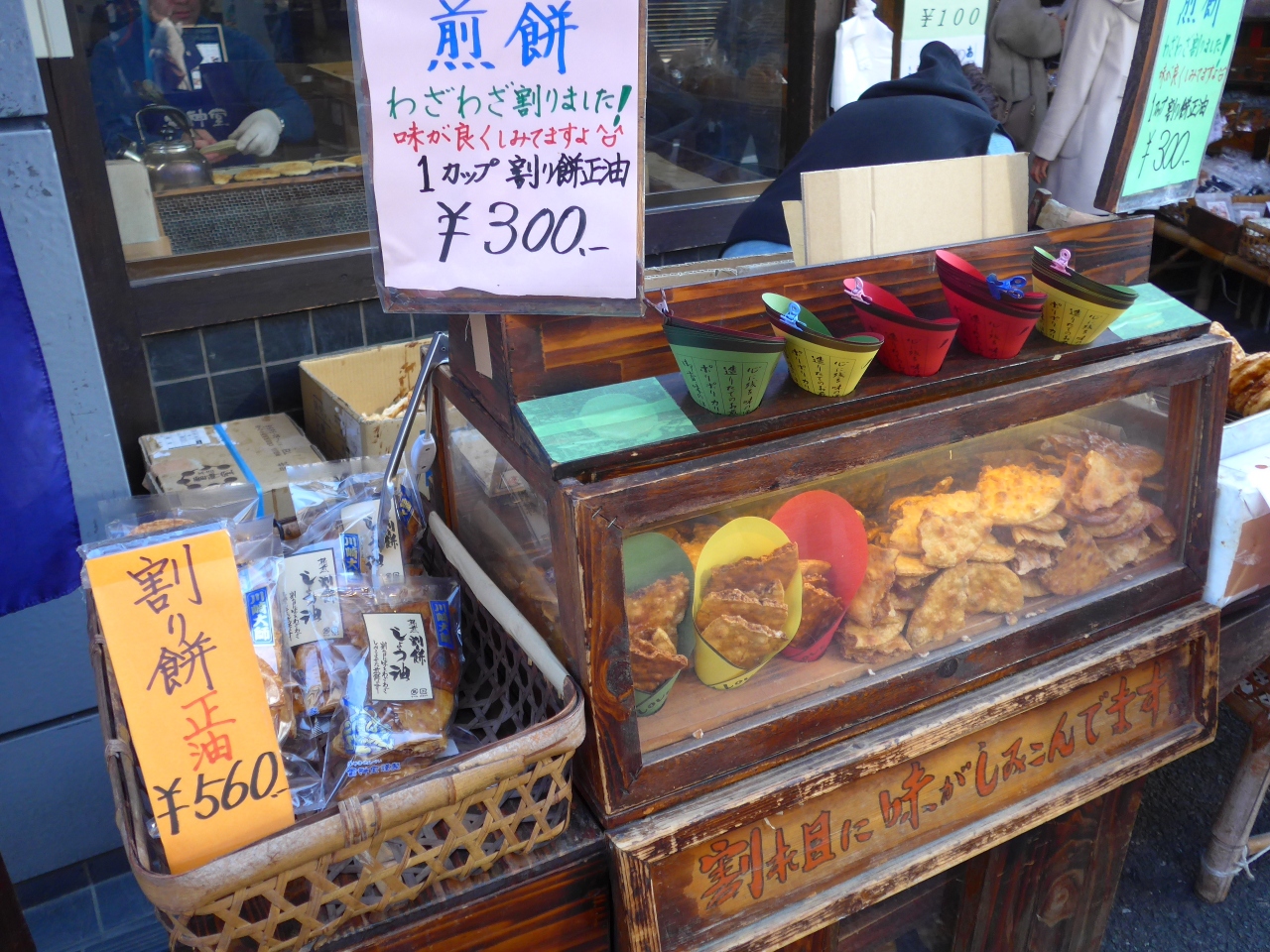 歩いていてお煎餅の香りに曳かれて寄ると試食のお煎餅を頂いてとても美味しかったので