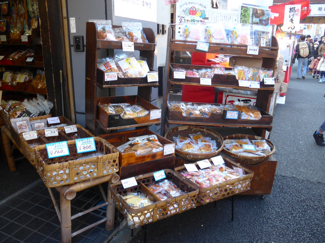 京急線・川崎大師駅を降りて川崎大師方面へ向かう表参道を進んで約3分位の右側に位置するお煎餅屋さんです。