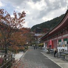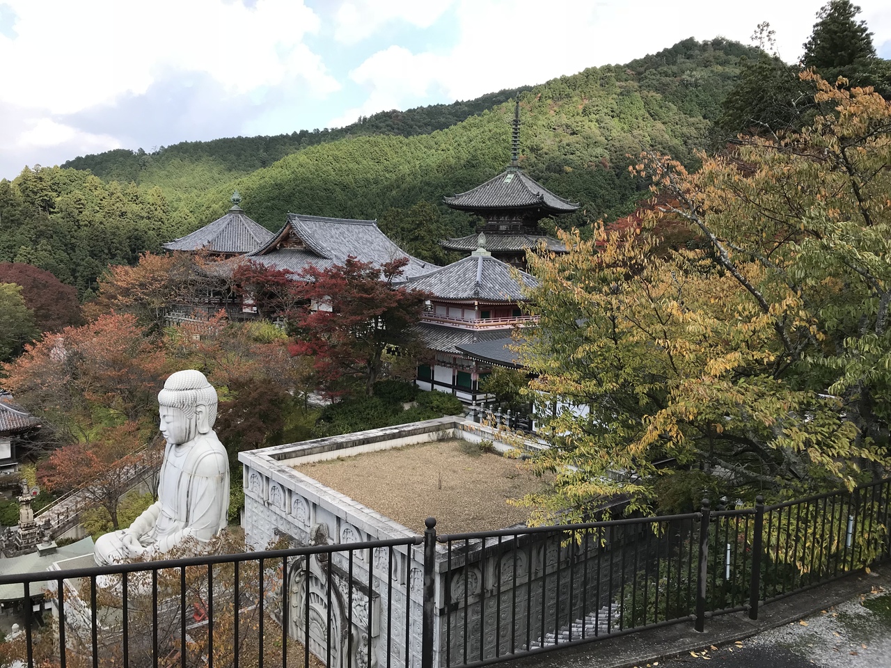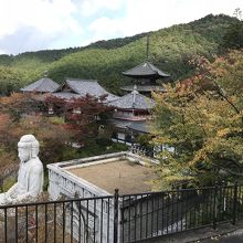 紅葉シーズンに来たので、欄干の朱・瓦の灰色・白壁・大仏の灰色と、空の青・針葉樹の緑・紅葉の色合いが見事なコントラストを演出していた。