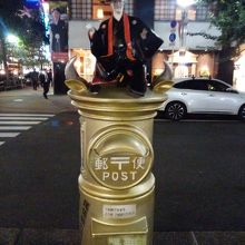 名古屋の繁華街「栄」を散策していると名古屋国際ホテルのすぐ近くに金色の郵便ポストを偶然見つけました。金色の郵便ポストに近づいてみると郵便ポストの上には侍のオブジェ(人形)が乗っていました。すぐ脇の案内板を見て、この侍が尾張藩七代藩主徳川宗春であることを知 りました。ユニークな郵便ポストなので興味があれば、立ち寄ってみるのも良いです。