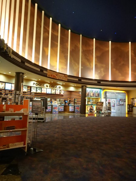 一階に飲食店、ゲームセンターなどがあり、ごった返し感がありますが、エスカレーターを上がると落ち着き感があります。映画館では休憩所というか待ち合わせに適した場所があり利用させて貰いました。映画館チケット売り場前にはDVDも売られていました。