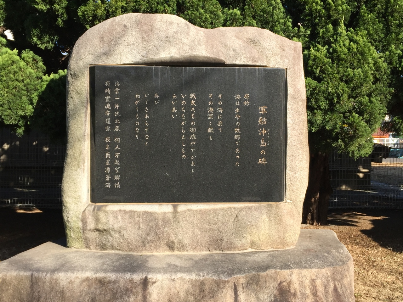 太平洋戦争中に撃沈された『沖島』軍艦の慰霊碑です。