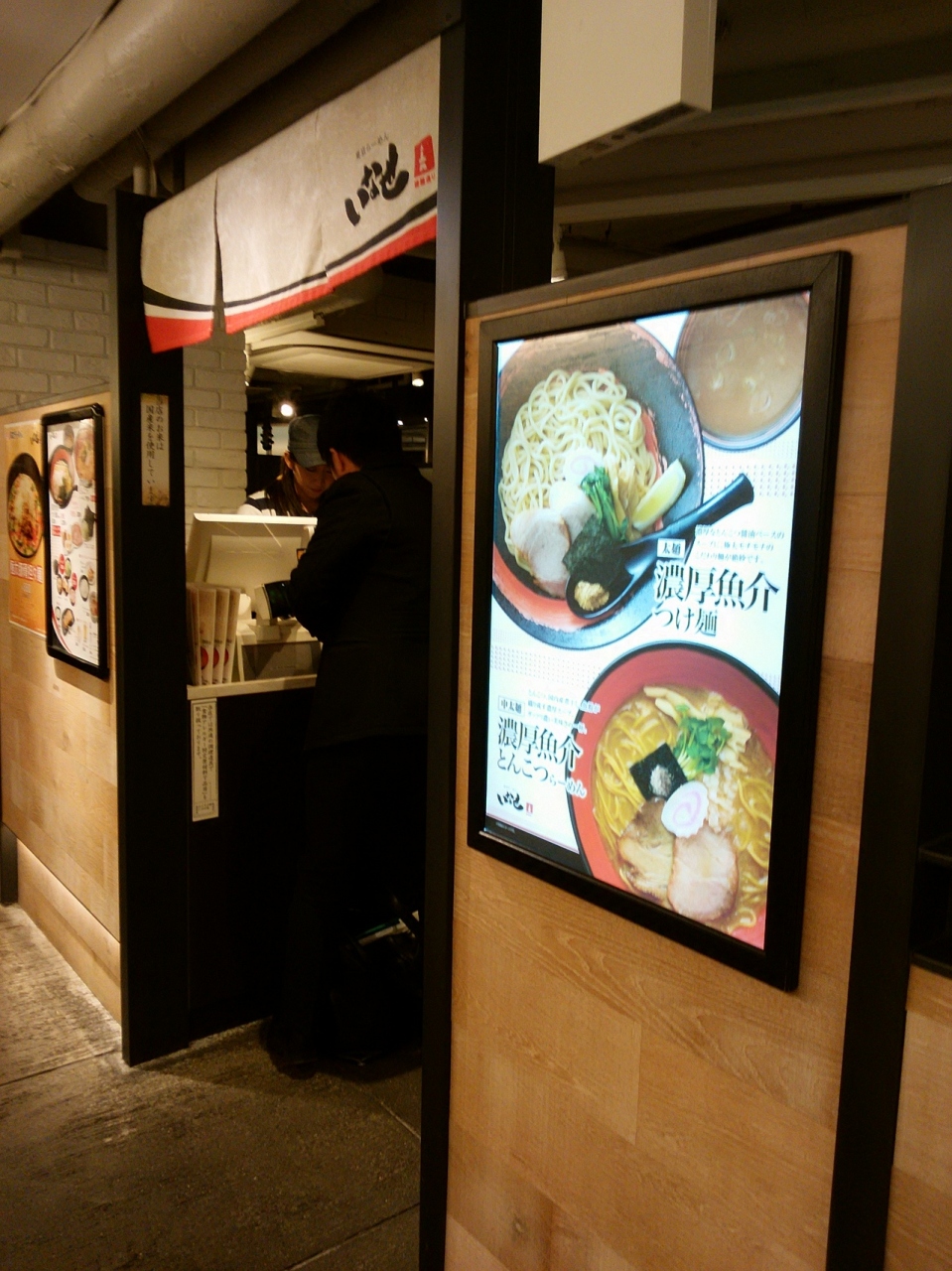 名古屋駅構内(改札外)の名古屋驛麺通りにあるラーメン店のひとつで、東京ラーメンを食べることができます。ランチタイムに行ったので店内は混雑していました。魚介ダシをベースとした濃厚なとんこつラーメンは極太麺とスープが良く絡み美味しかったです。