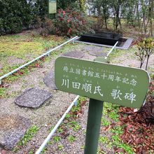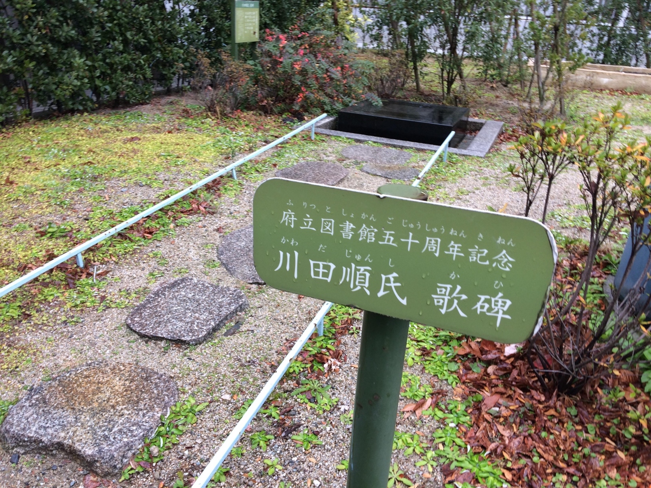 歴史の重みを感じる大阪府立中之島図書館の正面入口の左側の植栽に、このオブジェのような歌碑がありました。彼は第一高等学校から東京帝国大学、そして卒業後に住友財閥に入るなどエリートコースを歩み、筆頭重役まで昇進したものの、退職して歌人に転じた経歴があります。1954年にこの図書館の創立50周年を記念して造られたものだそうです。