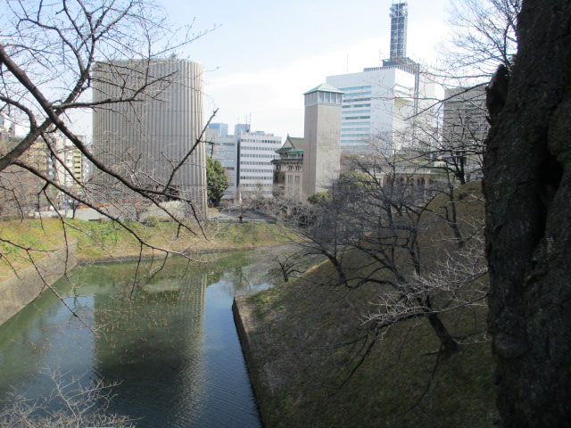 靖国神社に向かう緩やかな坂道で皇居の牛ヶ淵お濠は見ごたえあります。